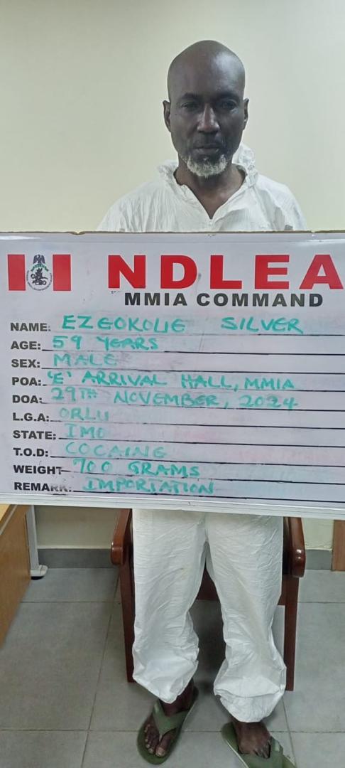 After 35 years in Brazil, a businessman based in the South American country, Ezeokoli Sylva has returned home with 700grams of cocaine buried in his stomach, a discovery made following his arrest by operatives of the National Drug Law Enforcement Agency, NDLEA, at the Murtala Muhammed International Airport, MMIA, Ikeja Lagos.