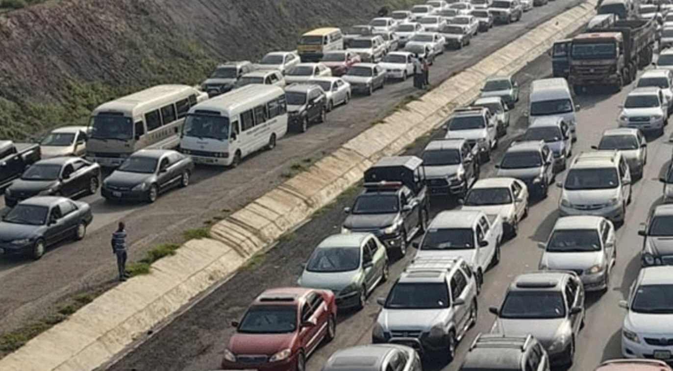 The closure of traffic on the Ado Bridge linking the One Man’s Village portion of the expressway is responsible for the traffic congestion.