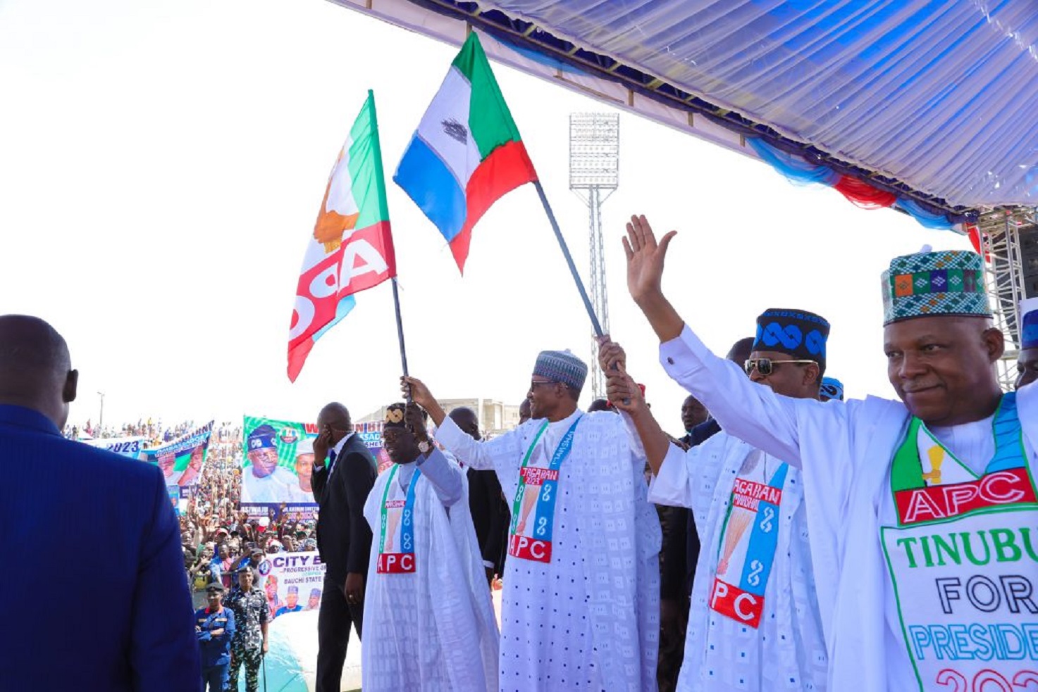 President Muhammadu Buhari, who was present at the rally, gave the party flags to Tinubu and the governorship candidate of the party for Bauchi State, Air Marshal Sadique Abubakar (rtd) while the rally ground was agog with activities by party supporters.