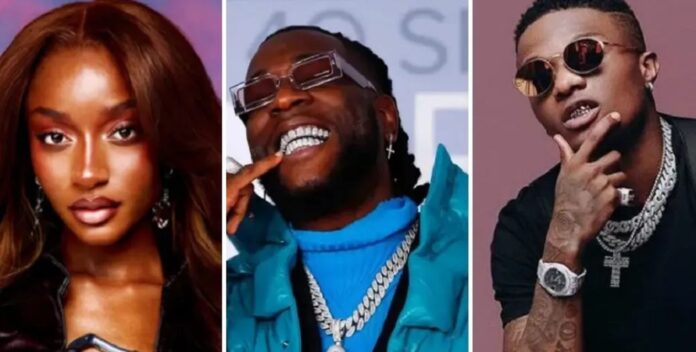 Ranked alongside Burna Boy are Divine Ikubor, known as Rema; Balogun Ayodeji, popularly called Wizkid; Ahmed Ololade, Asake, and Ayra Starr, as the only female artist on the latest ranking.