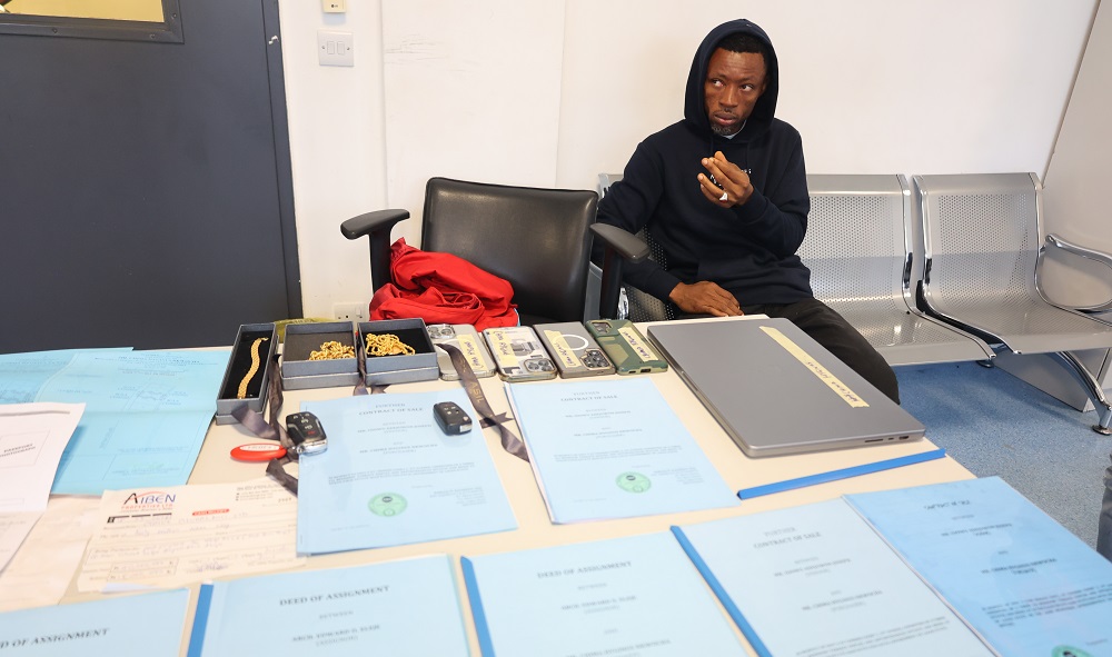 A three-bedroom terrace duplex at Cookies Court 2, 2nd Avenue, Ocean Palm Estate, Ogombo, Sangotedo, Ajah, Lagos, a three-bedroom bungalow and two self-contained apartments situated on Plot B023, Standard Estate, Galadima, Abuja, and a plot of land measuring about 300 square meters at Eko Beach City, Lekki Phase 1, Lagos, two Zenith Bank drafts worth N5,000,000 and N3,000,000, dated September 12, 2024, and October 17, 2024, respectively. An iPhone 13 Pro Max, a Samsung Galaxy S21 Ultra, and a Samsung Galaxy S24 Ultra.