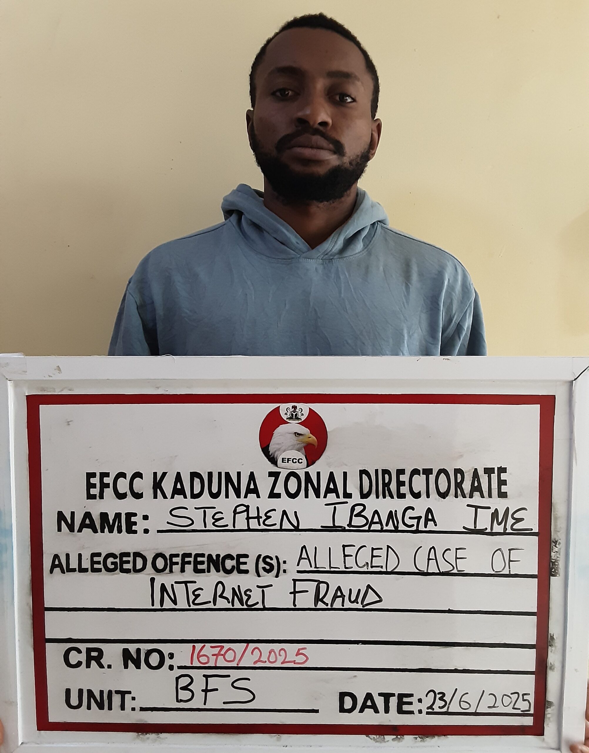 Ibanga’s charge reads: “That you, Stephen Ime Ibanga (a.k.a James Armstrong) male, sometimes in March, 2025 at Kaduna within the jurisdiction of this Honourable Court, impersonated James Armstrong (a citizen of United States of America) on ‘Facebook’ (an online social media application) and benefitted the total sum of N744,968.00 (Seven Hundred and Forty-four Thousand Nine Hundred and Six-eight Naira, only) from several unsuspecting victims and thereby committed an offence contrary to Section 308 of the Kaduna State Penal Code Law, 2017 and punishable under Section 309 of the same Law.”