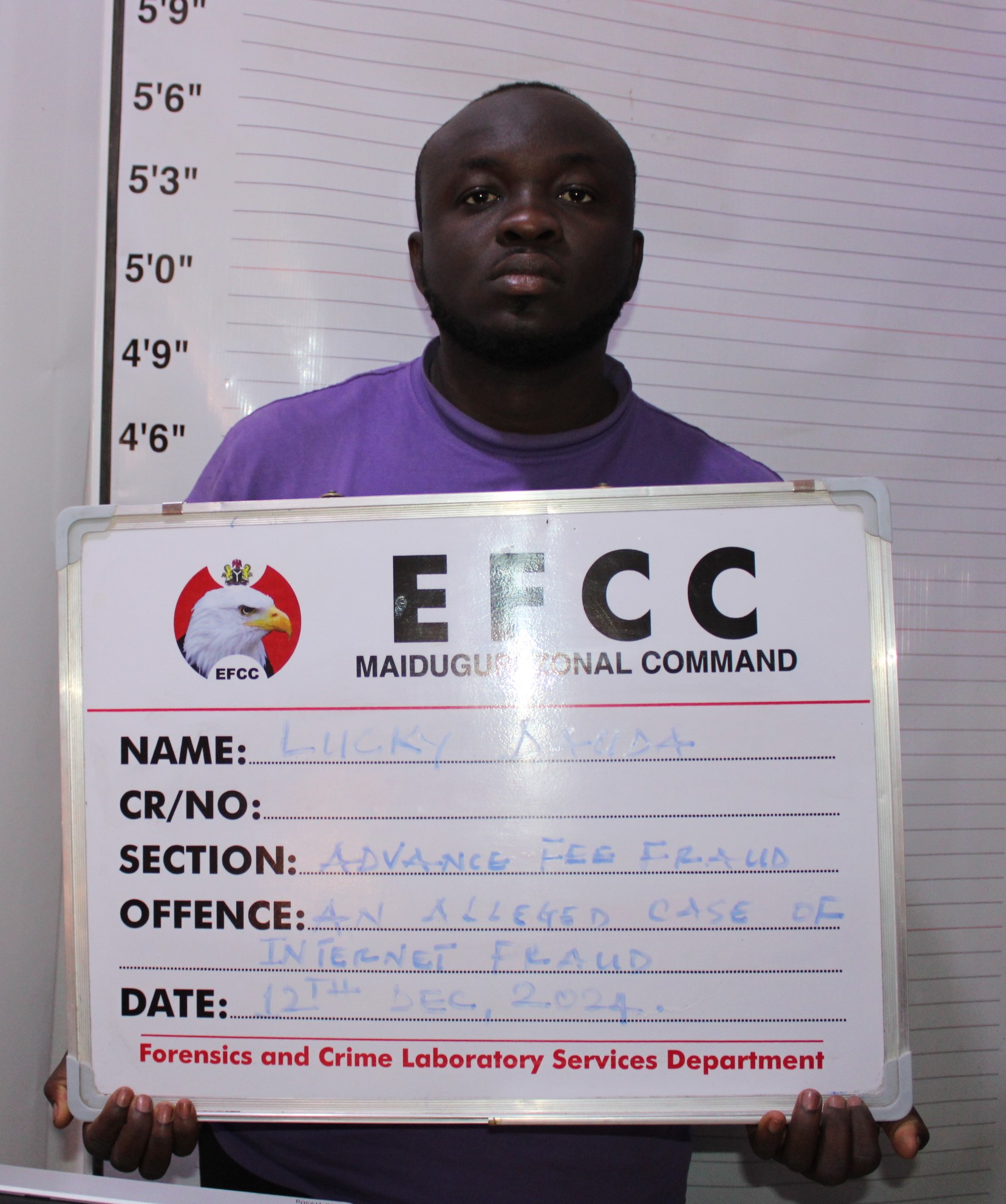 That of Dauda reads: “That you, Lucky Dauda between 2020 and 2024 at Maiduguri, Borno State within the jurisdiction of this Honourable Court did directly take possession of aggregate sum of $20,615.00 (Twenty Thousand Six Hundred and Fifteen cents United States of American Dollars) into your Guaranty Trust Bank Plc account No. 0165705344 Dauda Lucky, being the value for United States of American dollars denominated cash app, google play, visa, walmart, payPal and gift cards etc. that you fraudulently received which you knew or reasonably ought to have known is proceeds of your fraud or form part of proceeds of unlawful act and thereby committed an offence contrary to Section 18(2) (d) of the Money Laundering Prevention and Prohibition Act 2022 and punishable under Section 18(3) of the same Act.”