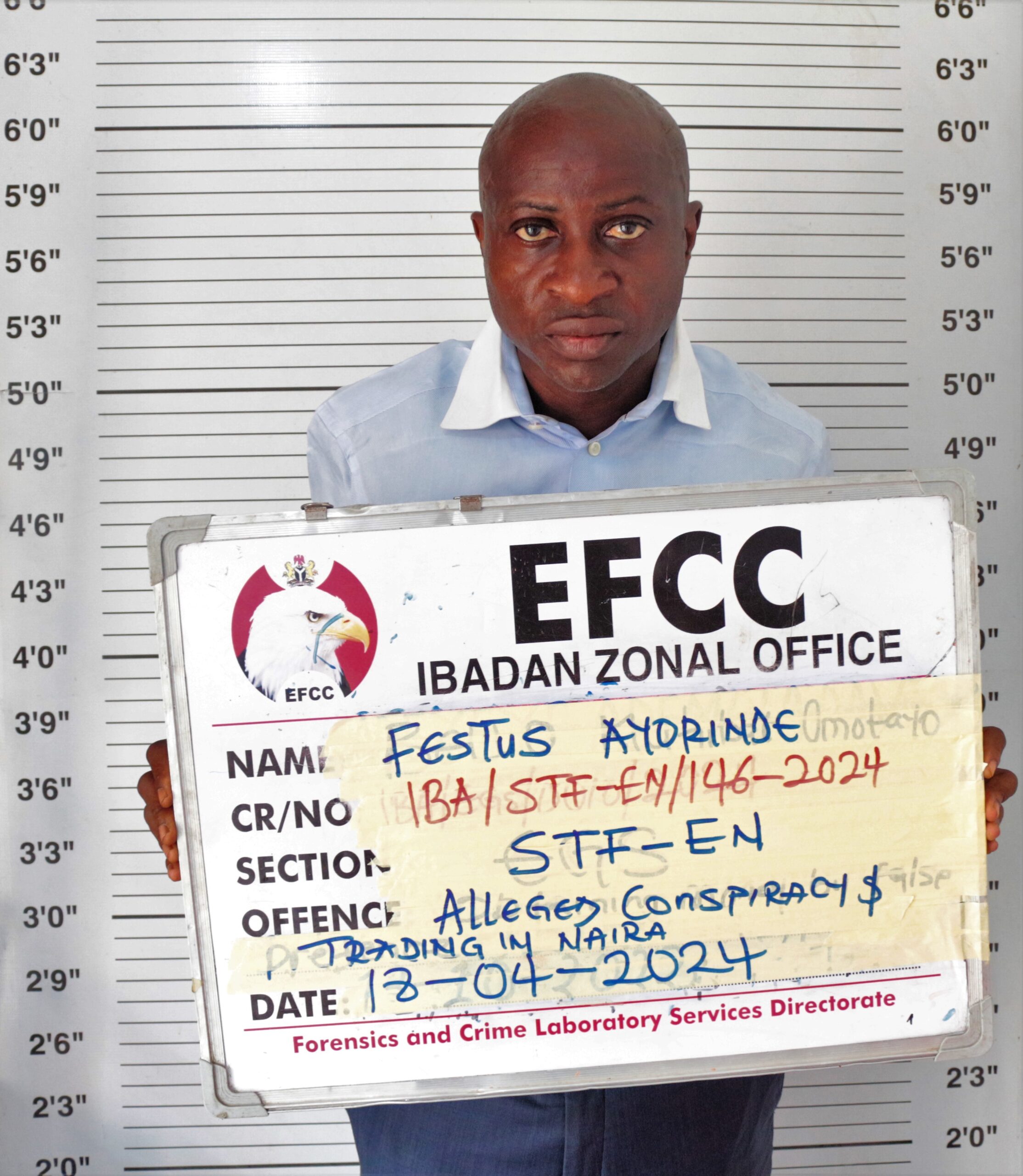 The charge reads: “That you Ayorinde Festus Morakinyo sometimes in December. 2023 in Ibadan within the jurisdiction of this Honourable Court did sell the sum of N1,000,000.00 (One Million Naira) in N1000 (One Thousand Naira) and N500 (Five Hundred Naira) denominations, issued by the Central Bank of Nigeria for the sum of N50, 000.00 (Fifty Thousand Naira) only and thereby committed an offence contrary to Section 21(4) of the Central Bank of Nigeria Act, 2007 and Punishable under Section 21(1) of the same Act.”