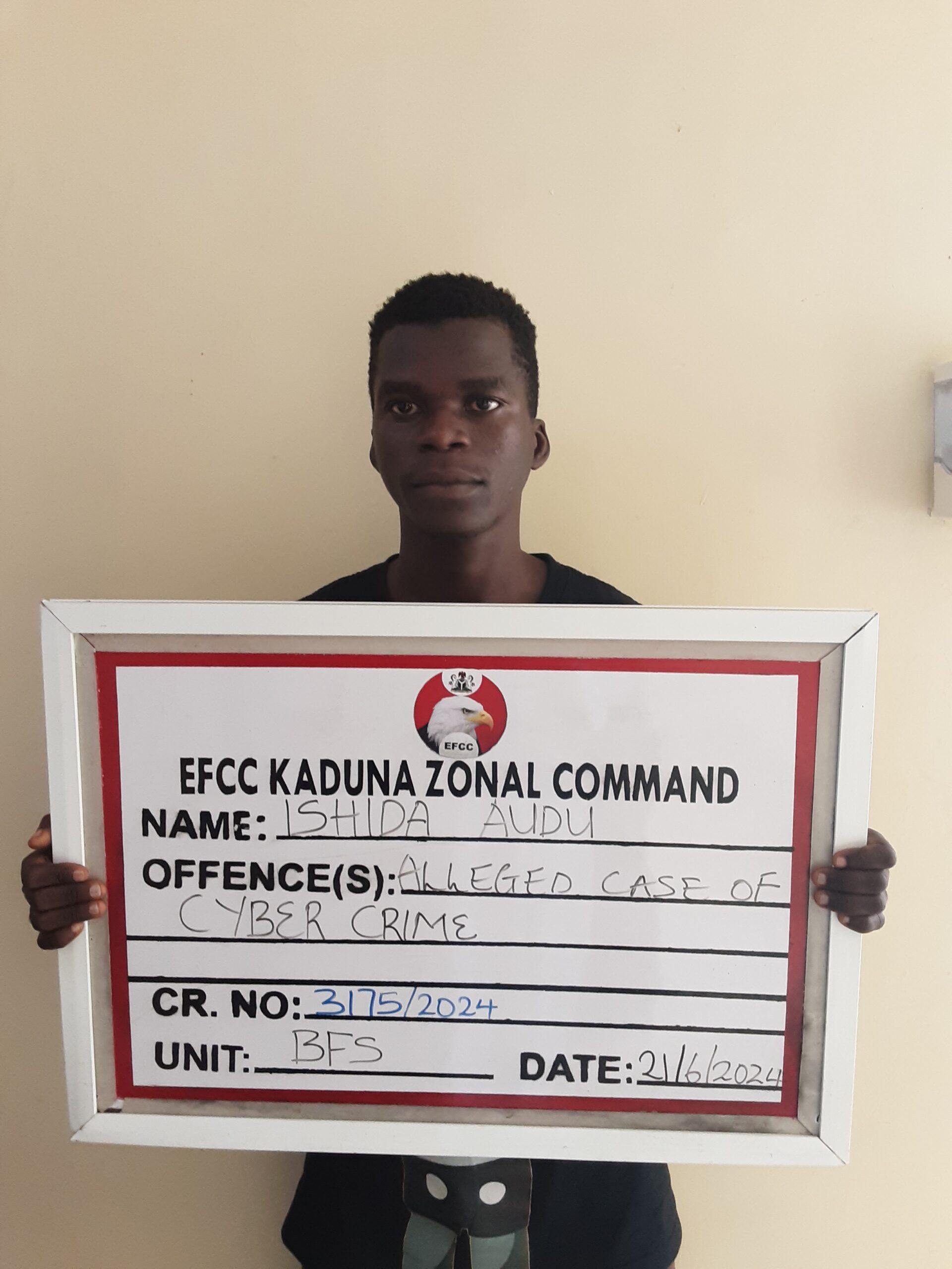 Ishida was arrested alongside other members of an internet fraud ring in Jos, Plateau State following an intelligence-driven raid on their hideouts by operatives of Kaduna Zonal Command of the EFCC.