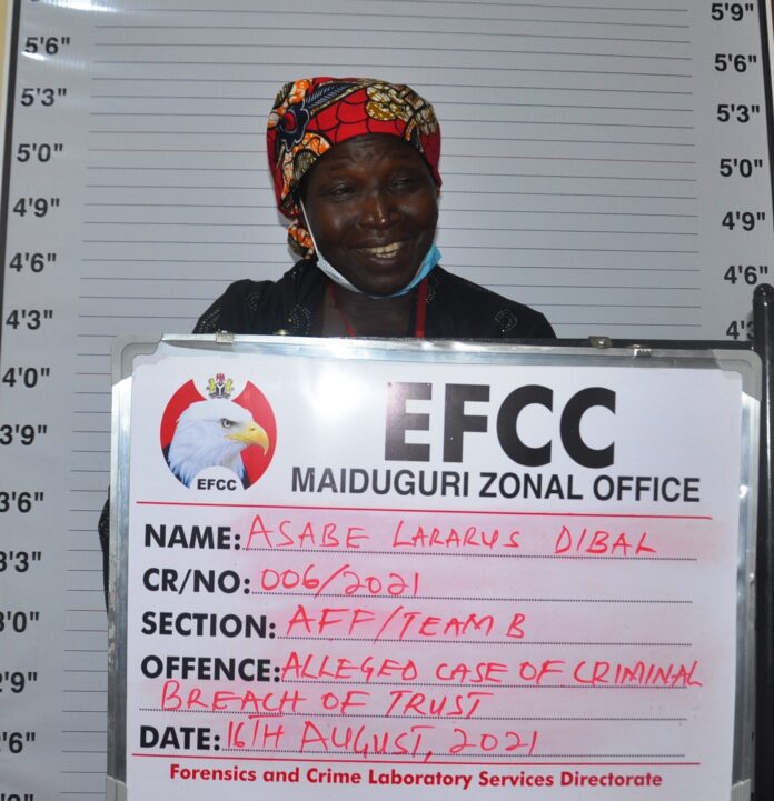 The Maiduguri Zonal Command of the Economic and Financial Crimes Commission, EFCC, on Monday, arraigned Asabe Lazarus Dibal before Justice Aisha Kumaliya of the Borno State High Court in Maiduguri over her alleged involvement in criminal misappropriation of N15million.