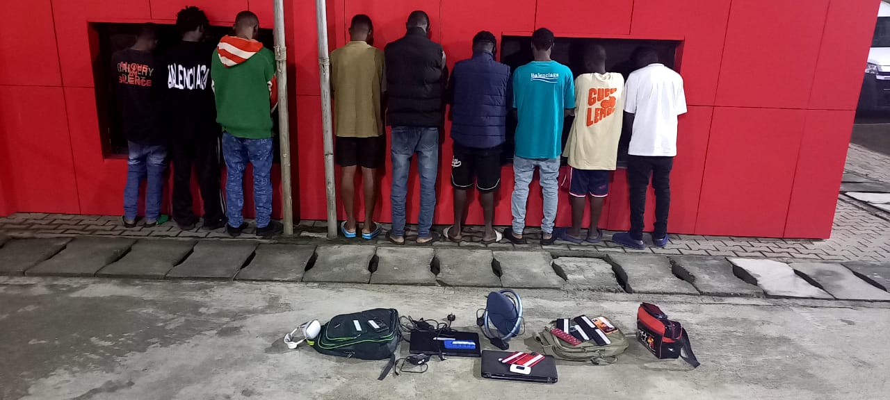 The suspects: Bassey Sunday Junior, Samson Zachariah, Ogonyi Jeremiah, Sunday Martins, Austin Yayison, Wilson Chinaza, Emmanuel Adeyi, Samuel Mark and Emmanuel Bassey, were arrested on Tuesday, August 30, 2022 at Voque Hotel in the Mararaba Area of Abuja for alleged involvement in cybercrimes.