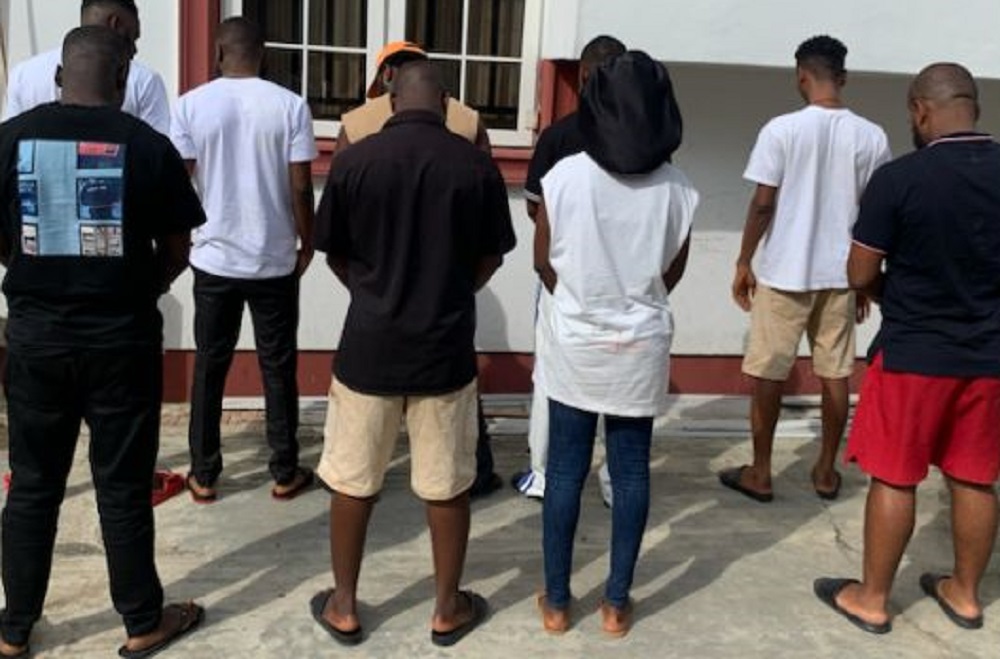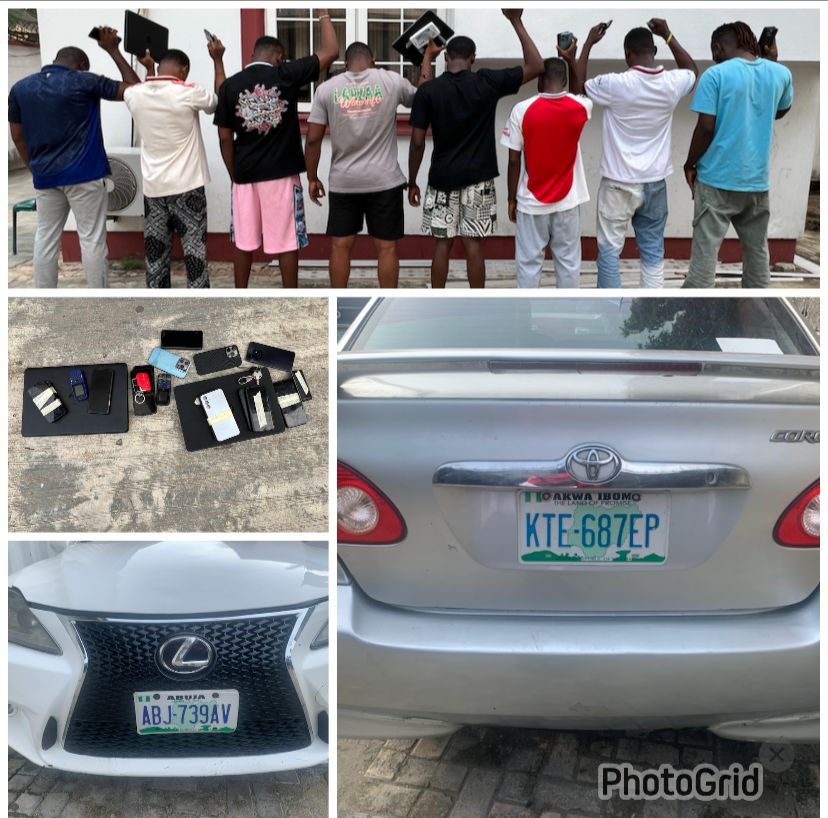 The suspects are: Osita Emmanuel (25 years), Saint Johnson, (20 years), Peter Lucky (26 years), Samuel Asuquo, (28 years), Raphael James, (29 years), Chimobi Moses, (29 years), Edara Ubong, (21 years) and Nchekwube Paul, (23 years).