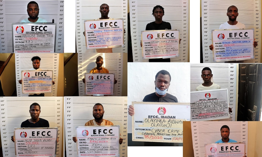 Also, 17 cybercriminals were convicted and sentenced various jail terms before Justices Ladiran Akintola, Mohammed Owolabi, Iyabo Yerima and Olusola Adetujoye of the Oyo State High Court and Justices Olugboyega Ogunfowora and A.A. Babawale of the Ogun State High Court, sitting in Abeokuta.