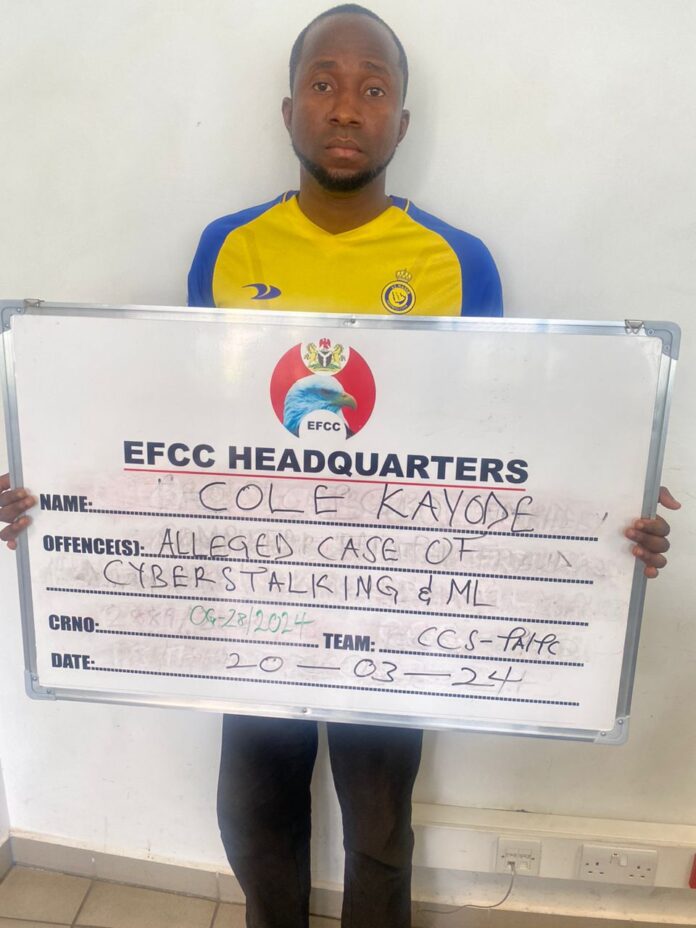 Operatives of the Economic and Financial Crimes Commission (EFCC), on Monday, March 18, 2024, arrested Kayode Cole for issuing a death threat against the Executive Chairman of the Commission, Ola Olukoyede.