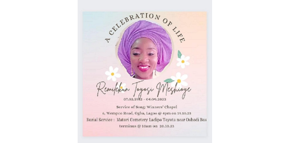 The family of late Remilekun Toyosi Meshioye, a Nigerian citizen, who died aboard Egyptair on September 4, 2023 in Cairo on her way to London for studies, has announced her burial plans with the repatriation of the body back to Lagos on Wednesday.