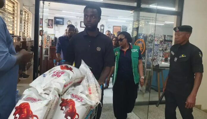 The officials of the Federal Competition and Consumer Protection Commission (FCCPC), are currently evacuating some bags of rice filled with weevils from all branches of 4U supermarket in Abuja.