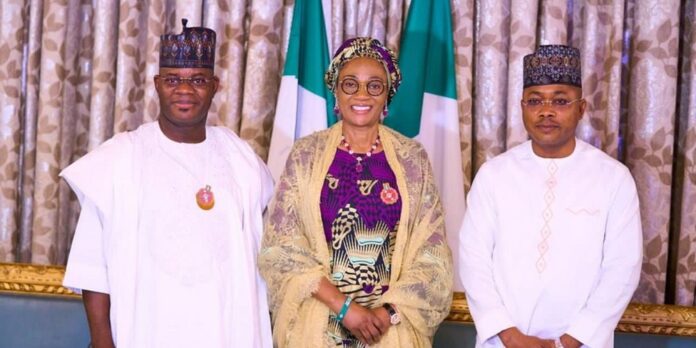 Kogi State Governor, Yahaya Bello, and Governor-elect Ahmed Usman Ododo paid a courtesy visit to the first lady, Oluremi Tinubu, at the State House, Presidential Villa, Abuja, on Tuesday.