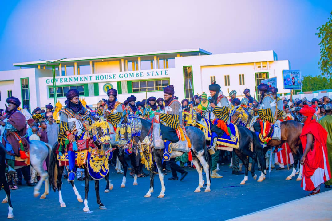 The annual homage, a deeply rooted cultural tradition of the Gombe Emirate, saw the Emir, flanked by district heads, council members, traditional title holders and hundreds of horsemen clad in regal attire, pay respects to the governor in a colourful display of tradition, unity, and leadership, as part of the 1446/2025 Eid El-Kabir celebrations.