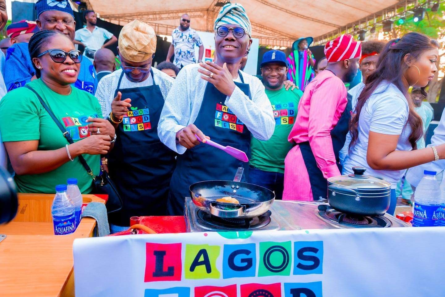Lagos State governor, Babajide Sanwo-Olu, has participated in cooking and tasting of local delicacies at this year’s Lagos Food Festival, which held on Sunday.