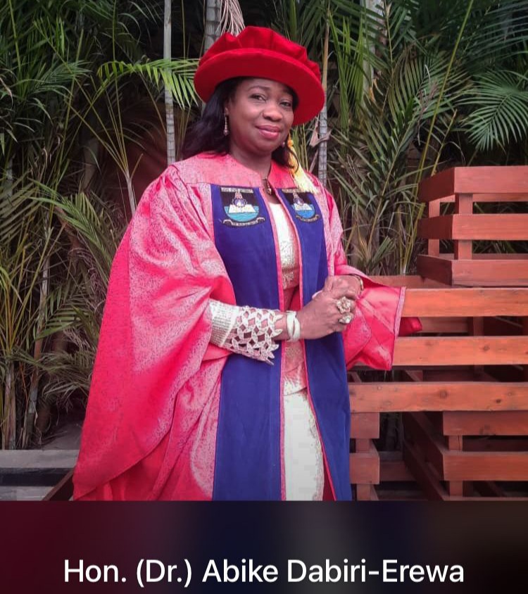I hereby join numerous well wishers to felicitate with Hon. (Dr) Abike Dabiri-Erewa on her conferment of Honorary Doctorate Degree from the prestigious Lagos State University and pray that more laurels await her in her future endeavours.