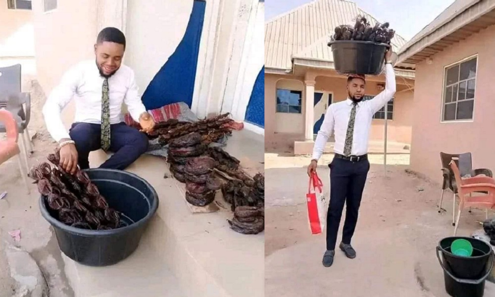 In what signposts the frightening situation of unemployment in Nigeria, Mr Unongu Kelvin, a graduate of the Joseph Sarwaaun Tarka University Makurdi (JOSTUM) formerly known as Federal University of Agriculture, Makurdi (FUAM), has turned to a corporate fish seller as he now carries a basin of dried fishes on his head as he hawks daily around Makurdi metropolis in Benue State.