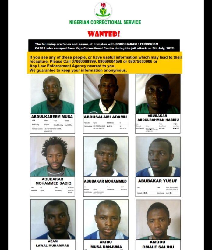 Some of the wanted inmates are Abdulkareem Musa, Abdulsalami Adamu, Abubakar A Habibu, Abubakar M Sadiq, Abubakar Mohammed, Akibu Musa Danjuma, Amodu Omale Salihu and Ismaila Idris Abdullahi.