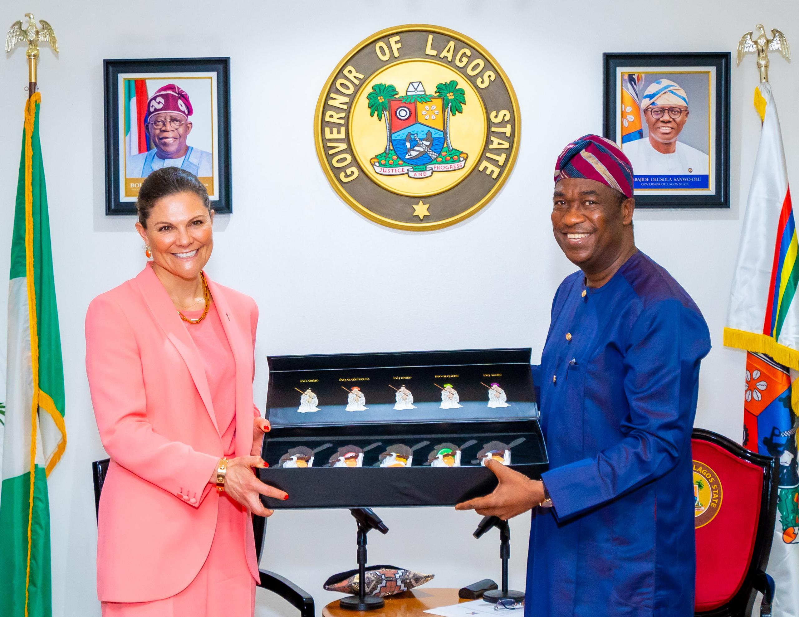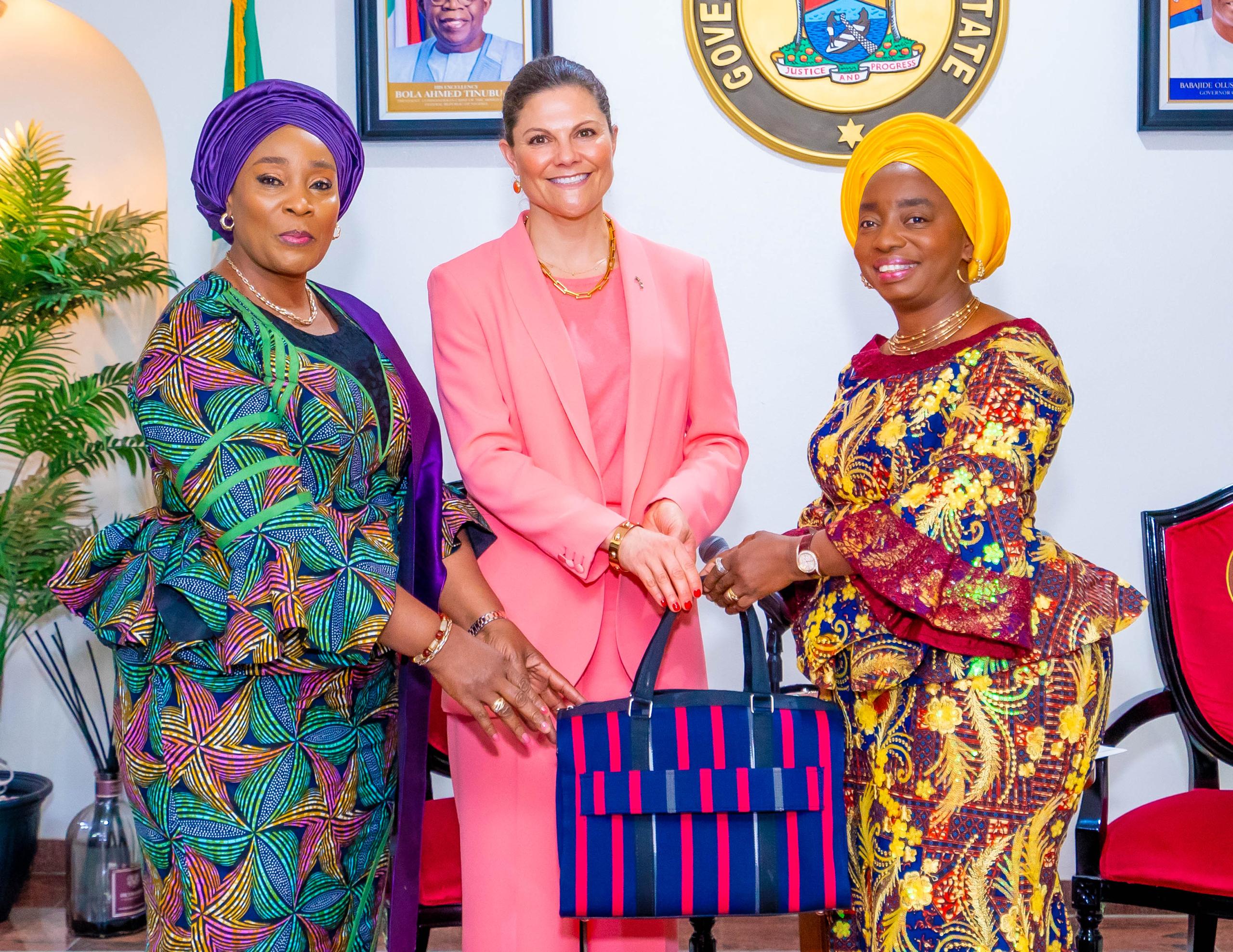 During the visit, First Lady of Lagos State, Dr Ibijoke Sanwo-Olu, and wife of the Deputy Governor, Mrs Oluremi Hamzat, presented African custom gifts to the Crown Princess of Sweden, who was also accompanied by the Ambassador of Nigeria in Sweden, Ambassador Tiwatope Elias-Fatile, among others.