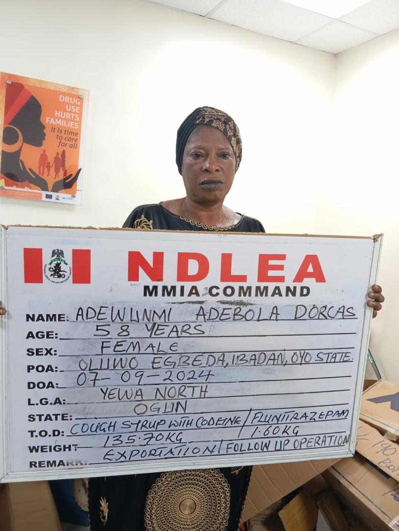 Operatives of the National Drug Law Enforcement Agency (NDLEA) have arrested an Ibadan, Oyo state-based businesswoman, Mrs. Adewunmi Adebola Dorcas and an auto parts dealer, Arinze Ora over attempts to export consignments of opioids and cocaine to London, United Kingdom and Congo Brazzaville respectively.