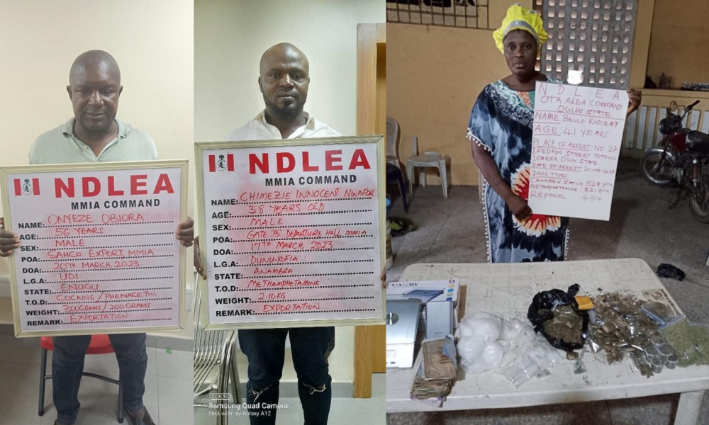 In Lagos, a total of 1,030.6 kilograms of cannabis were recovered from at least three suspects: Bolaji Adesina; Femi Ojo and Jamiu Useni during raid operations in Mushin area of the state.