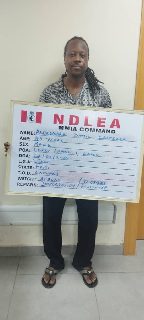 Operatives of the National Drug Law Enforcement Agency (NDLEA) have arrested a Lekki-based businessman and proprietor of Damillionz Takeout, Arokodare Damil Ebenezer, in connection with the shipment of 60 parcels of Loud, a strong strain of cannabis, from the United States of America to Nigeria.