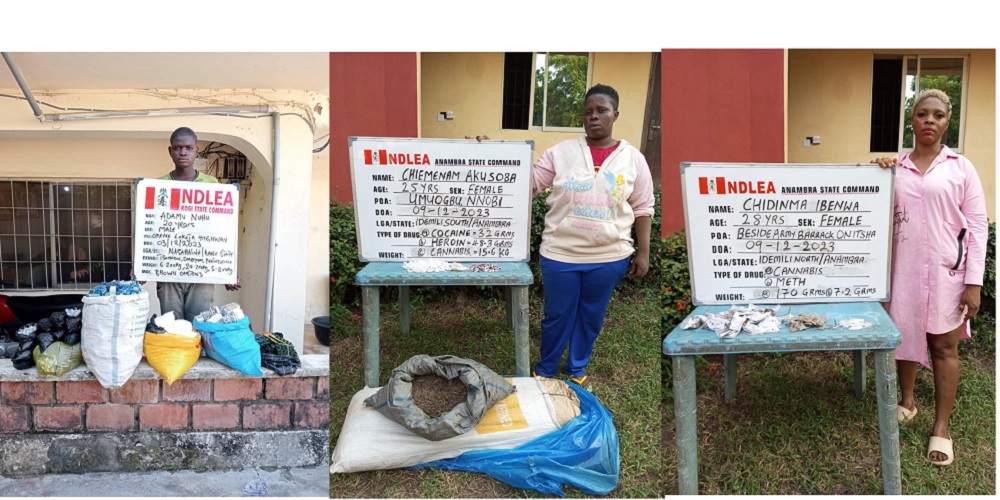 The driver, Ambrose Oyamedan, conductors – Samuel Otejere and Obey Jonathan as well as the truck were taken into custody for further investigation. Two ladies: Chiemenam Akusoba, 25, and Chidinma Ibenwa, 28, were also arrested on Saturday 9th December with 15.8503kg of Cocaine, Heroin, Methamphetamine and Cannabis sativa in Umuogbu, Nnobi and Onitsha respectively.