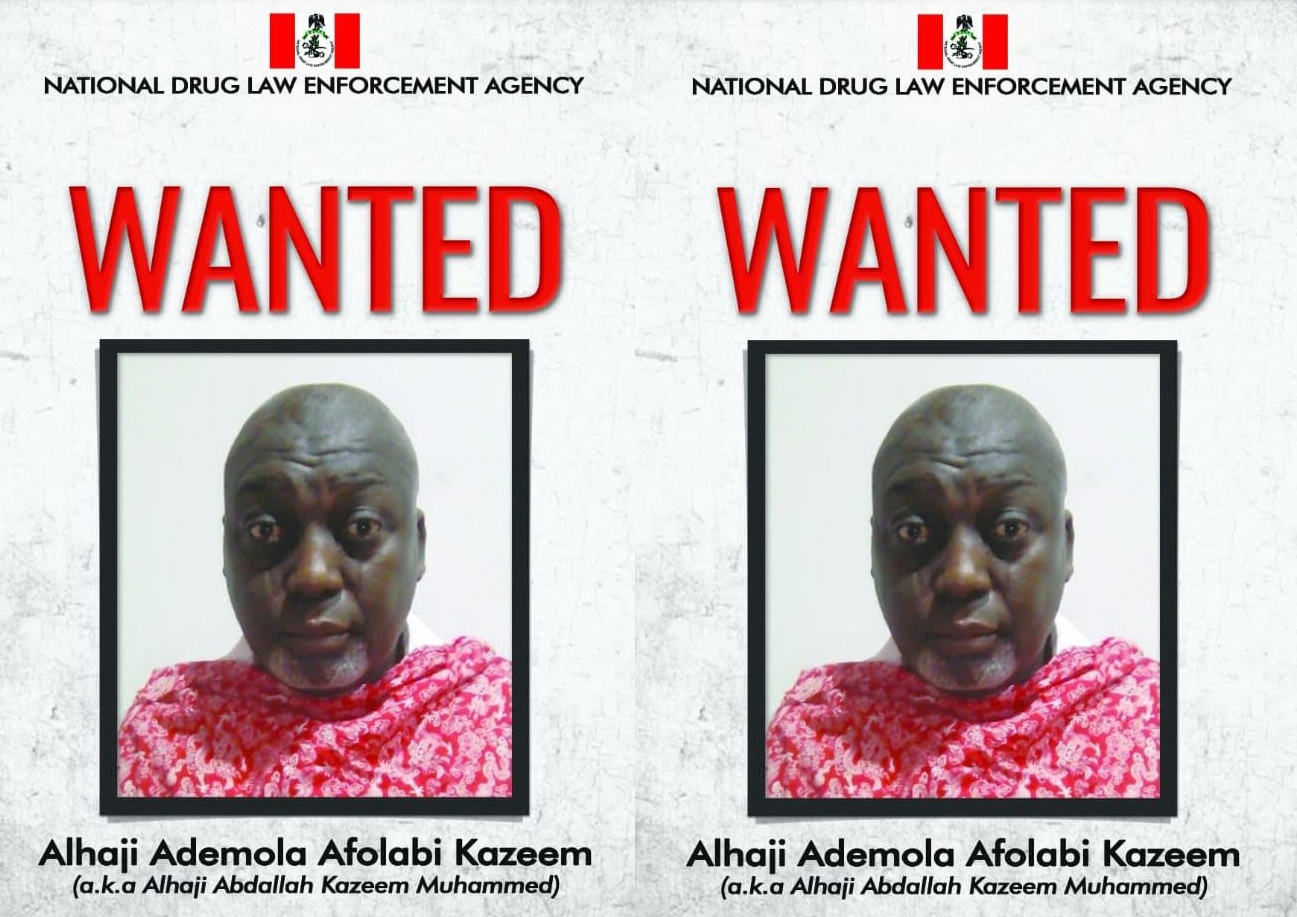 The National Drug Law Enforcement Agency, (NDLEA) has declared wanted, a Lagos socialite and owner of Adekaz Hotels, Alhaji Ademola Afolabi Kazeem (a.k.a Alhaji Abdallah Kazeem Muhammed) over offences bordering on exportation and trafficking of illicit drugs as well as money laundering.