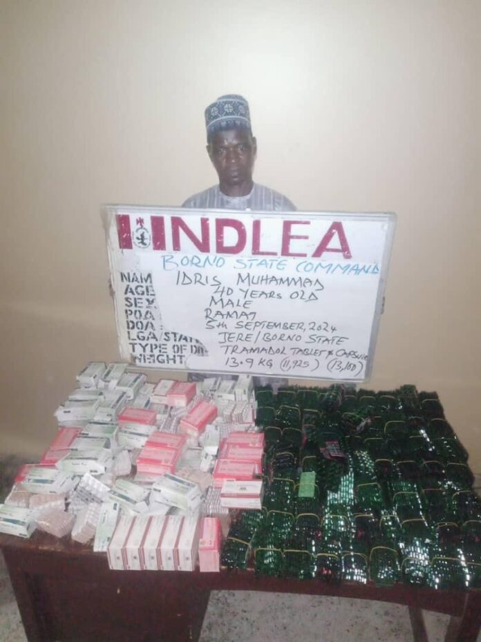 While NDLEA operatives in Borno state arrested Idris Muhammad, 40, at Ramat area of Maiduguri on Thursday 5th September with 13,100 pills of tramadol, their counterparts in Kano on Wednesday 4th September nabbed Hakilu Usman, 35, with 25.8kg cannabis and 3,000 pills of diazepam along Kano – Daura road.