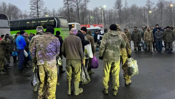 In a video posted by Russian human rights commissioner Tatyana Moskalkova, soldiers were seen gathered in front of coaches in military and winter clothing.