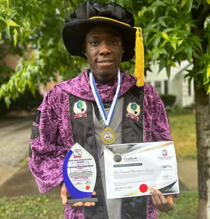 NAN also reports that in addition, he was honoured as a Professional Doctoral Fellow by The Across Global Institute of Foreign Languages (AGIFL) for his outstanding leadership and global achievements in mental health advocacy.