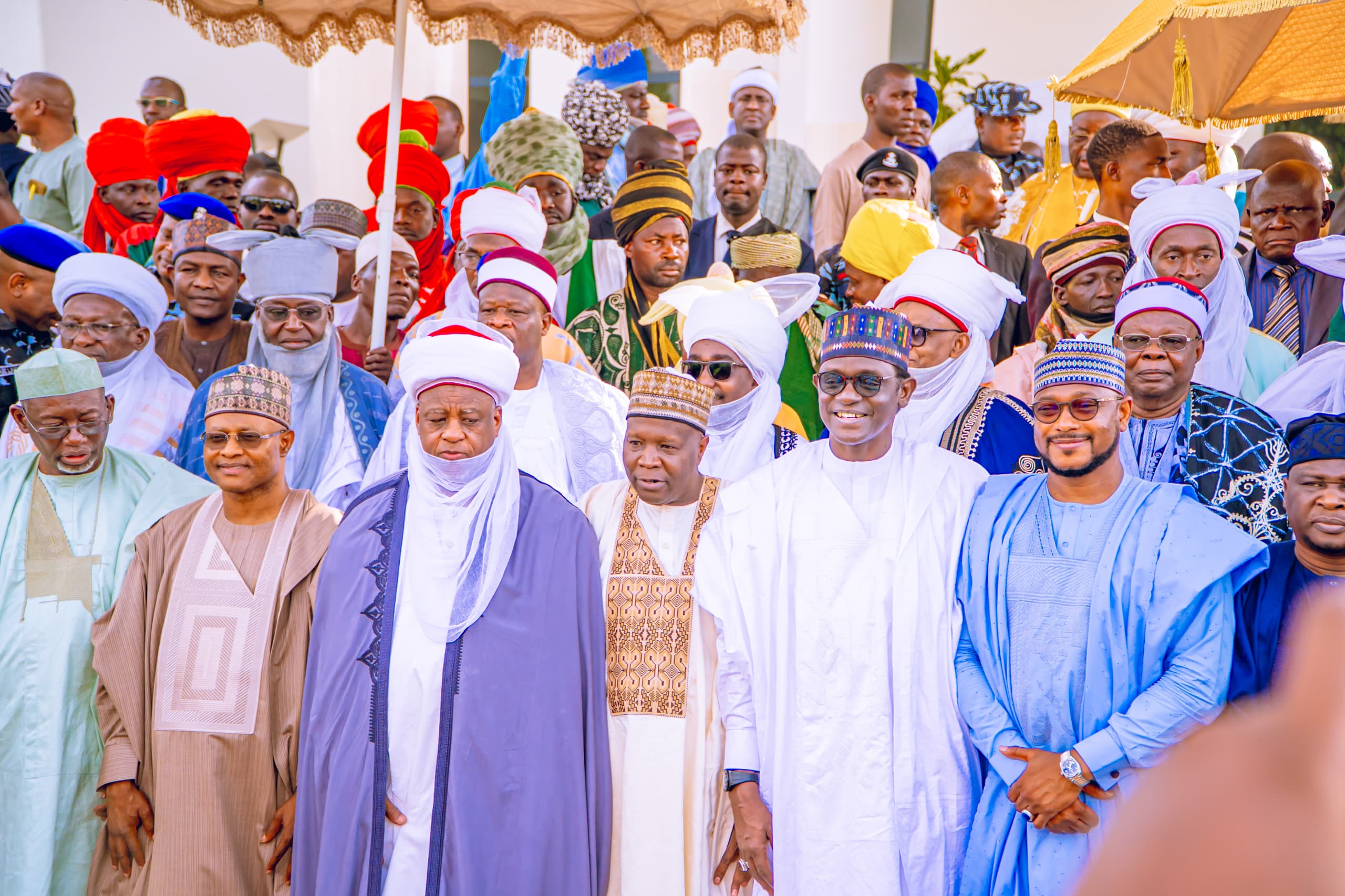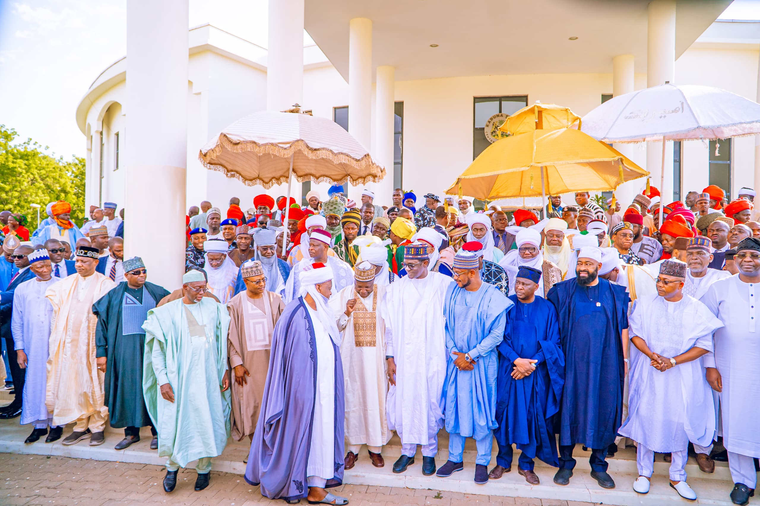 Photo Caption: Northern Governors, led by Governor Muhammadu Inuwa Yahaya of Gombe State (M) and Traditional rulers, led by Sultan Sa’ad Abubakar ( 5th L), after a joint meeting in Kaduna.
