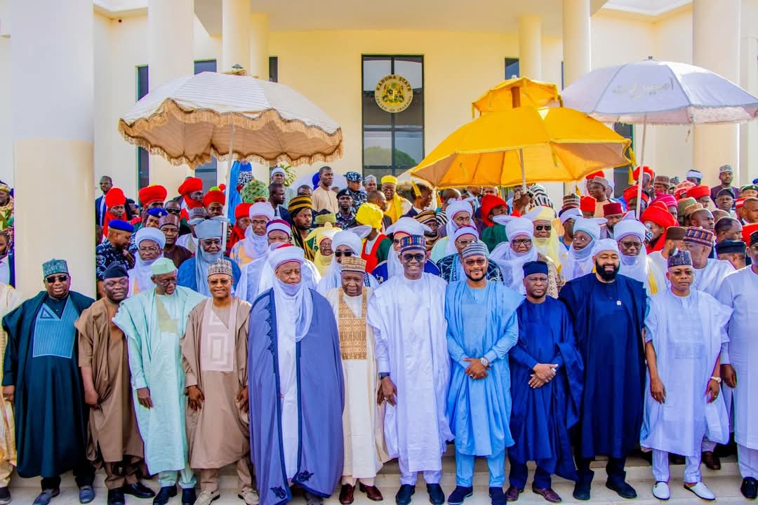 Photo Caption: Northern Governors, led by Governor Muhammadu Inuwa Yahaya of Gombe State (M) and Traditional rulers, led by Sultan Sa’ad Abubakar ( 5th L), after a joint meeting in Kaduna.