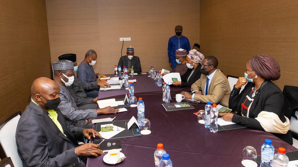 President Muhammadu Buhari presiding over a strategic meeting with members of his delegation for the EU-African Union Summit in Brussels, Belgium … on Wednesday.
