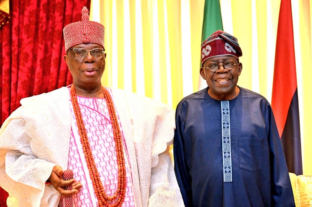 The Ewi of Ado-Ekiti, Oba Rufus Adejugbe and President Bola Ahmed Tinubu, during Sallah homage to President Tinubu in Lagos, Monday, June 9, 2025