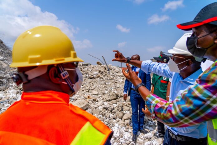 R-L: Lagos State Governor, Mr. Babajide Sanwo-Olu, Commissioner for Special Duties & Inter-Government Relations, Engr. Tayo Bamgbose-Martins and Director General, Lagos State Emergency Management Agency (LASEMA), Dr. Femi Oke-Osanyintolu during a revisit to the site of the Ikoyi building collapse, on Thursday, November 4, 2021.R-L: Director General, Lagos State Emergency Management Agency (LASEMA), Dr. Femi Oke-Osanyintolu; Commissioner for Special Duties & Inter-Government Relations, Engr. Tayo Bamgbose-Martins; Governor Babajide Sanwo-Olu and Commissioner for Physical Planning & Urban Development, Dr. Idris Salako, during a revisit to the site of the Ikoyi building collapse, on Thursday, November 4, 2021.
