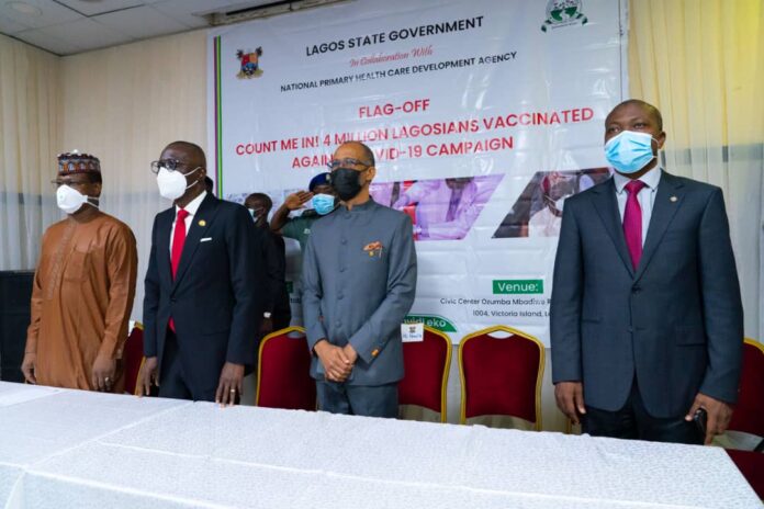 R-L: Lagos State Governor, Mr. Babajide Sanwo-Olu; Executive Director/CEO, National Primary Health Care Development Agency (NPHCDA), Dr. Faisal Shuaib and Lagos Commissioner for Information & Strategy, Mr. Gbenga Omotoso, during the Flag Off Ceremony of the “Count Me In! 4 Million Lagosians Vaccinated Against Covid-19” Campaign at Civic Center, Victoria Island, On Wednesday, October 27, 2021.R-L: Secretary to the Lagos State Government (SSG), Mrs. Folashade Jaji; Commissioner for Health, Prof. Akin Abayomi; Governor Babajide Sanwo-Olu and Executive Director/CEO, National Primary Health Care Development Agency (NPHCDA), Dr. Faisal Shuaib, during the Flag Off Ceremony of the “Count Me In! 4 Million Lagosians Vaccinated Against Covid-19” Campaign at Civic Center, Victoria Island, On Wednesday, October 27, 2021.R-L: Lagos State Governor, Mr. Babajide Sanwo-Olu; Executive Director/CEO, National Primary Health Care Development Agency (NPHCDA), Dr. Faisal Shuaib and Commissioner for Health, Prof. Akin Abayomi, during the Flag Off Ceremony of the “Count Me In! 4 Million Lagosians Vaccinated Against Covid-19” Campaign at Civic Center, Victoria Island, On Wednesday, October 27, 2021.L-R: Executive Director/CEO, National Primary Health Care Development Agency (NPHCDA), Dr. Faisal Shuaib; Lagos State Governor, Mr. Babajide Sanwo-Olu and Chief of Lagos Field Office, UNICEF Nigeria, Celine Lafoucriere, during the Flag Off Ceremony of the “Count Me In! 4 Million Lagosians Vaccinated Against Covid-19” Campaign at Civic Center, Victoria Island, On Wednesday, October 27, 2021.