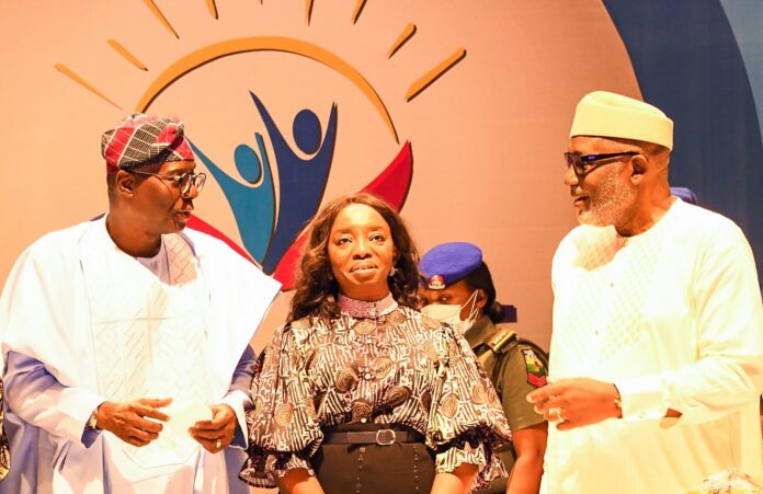 L-R: Wife of Ekiti State Governor, Erelu Bisi Fayemi; Lagos State Deputy Governor, Dr. Obafemi Hamzat; his wife, Oluremi; Governor Babajide Sanwo-Olu; his wife & COWLSO Chairman, Dr. Ibironke; representative of Nigeria’s First Lady and Senior Special Assistant to the President on Women Affairs and Administration, Dr. Rukayyatu Gurin and Governor of Ondo State, Arakurin Rotimi Akeredolu (SAN) during the opening of Committee of Wives of Lagos State Officials (COWLSO) 21st National Women Conference themed “Awake” at the Eko Convention Centre, Eko Hotels & Suites, Victoria Island, on Tuesday, October 26, 2021L-R: COWLSO Chairman, Dr. (Mrs) Ibironke Sanwo-Olu; her Vice, Mrs. Oluremi Hamzat; Justice Olajumoke Pedro, receiving Inspirational Youth award of the Year on behalf of Asisat Oshoala from Lagos State Governor, Mr. Babajide Sanwo-Olu; Deputy Governor, Dr. Obafemi Hamzat during the opening of Committee of Wives of Lagos State Officials (COWLSO) 21st National Women Conference themed “Awake” at the Eko Convention Centre, Eko Hotels & Suites, Victoria Island, on Tuesday, October 26, 2021R-L: COWLSO Chairman, Dr. Ibironke Sanwo-Olu; Lagos State Governor, Mr. Babajide Sanwo-Olu; wife of Lagos Deputy Governor, Mrs. Oluremi Hamzat and her spouse, Dr. Obafemi Hamzat, during the opening of Committee of Wives of Lagos State Officials (COWLSO) 21st National Women Conference themed “Awake” at the Eko Convention Centre, Eko Hotels & Suites, Victoria Island, on Tuesday, October 26, 2021