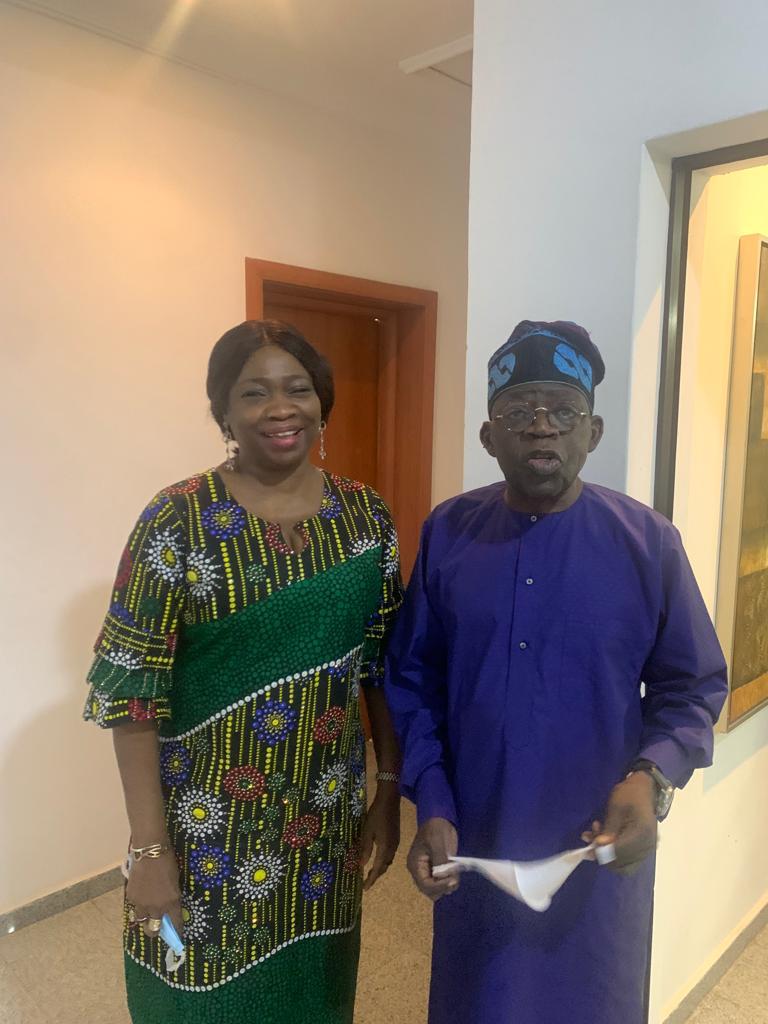 LR: Chairman, Nigerians in Diaspora Commission (NIDCOM) , Hon Abike Dabiri- Erewa and the National Leader, All Progressives Congress (APC), Asiwaju Bola Tinubu, during Dabiri-Erewa’s courtesy visit to Tinubu in Abuja … on Friday.