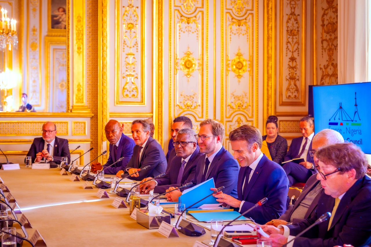 President Bola Tinubu and French President Emmanuel Macron participate in the Nigerian France Business Council at the Élysée Palace. Both Presidents witnessed the signing of an agreement between UBA Chairman, Tony Elumelu and French Finance Minister Antoine Armand. 28TH November 2024.