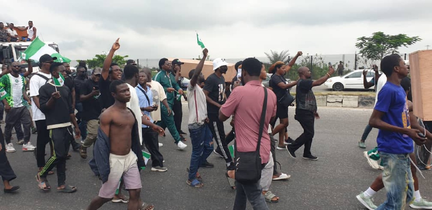 Scenes from EndSARS memorial procession at Lekki Tollgate in Lagos… on Thursday.