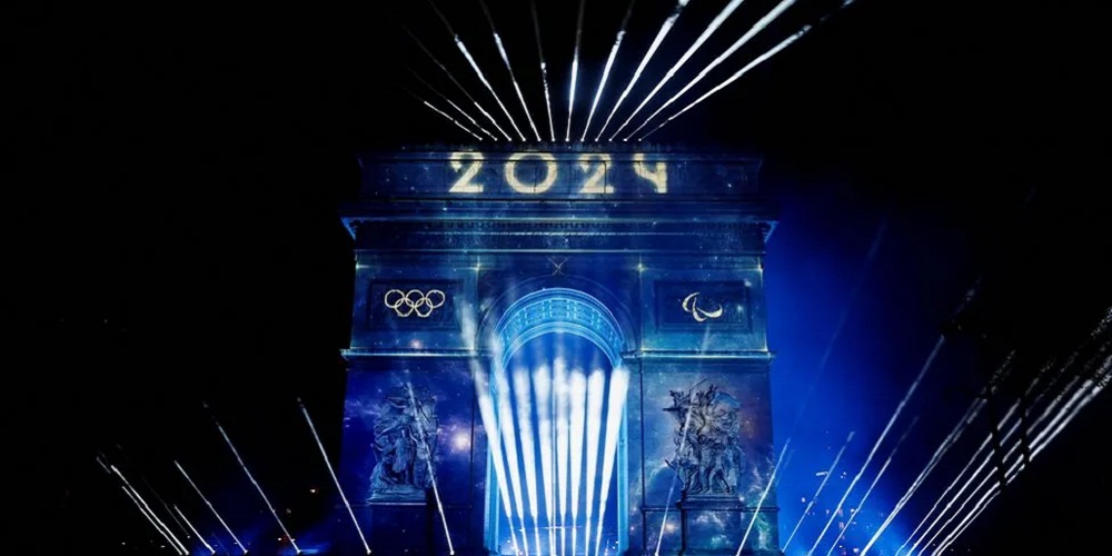 Lights lit up the Arc de Triomphe in Paris, as the city prepares for its Olympic year