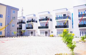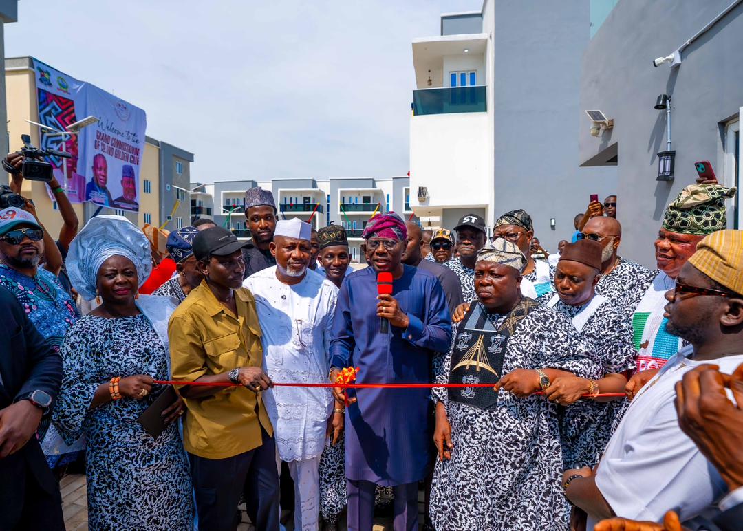 Pix 2380: Governor of Lagos State, Mr. Babajide Sanwo-Olu (middle); Chairman, Lagos Island East LCDA, Mayor Muibi Folawiyo (2nd right); MD/CEO, Upfront Homes, Mr. Babatunde Faleye (right) and others, during the commissioning of Prince Tajudeen Olusi Olusi Island East Golden Court at Lagos Island East LCDA on Thursday, November 13, 2025.
