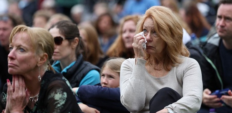 The crowd who have gathered outside Westminster Abbey and along Parliament Street fell silent as the funeral service for Queen Elizabeth II began.