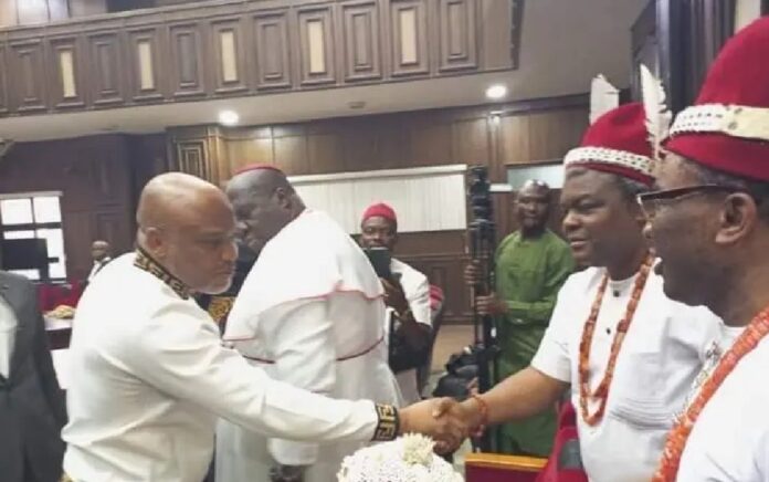 Kanu in some of the pictures was seen exchanging pleasantries with some religious and traditional leaders.