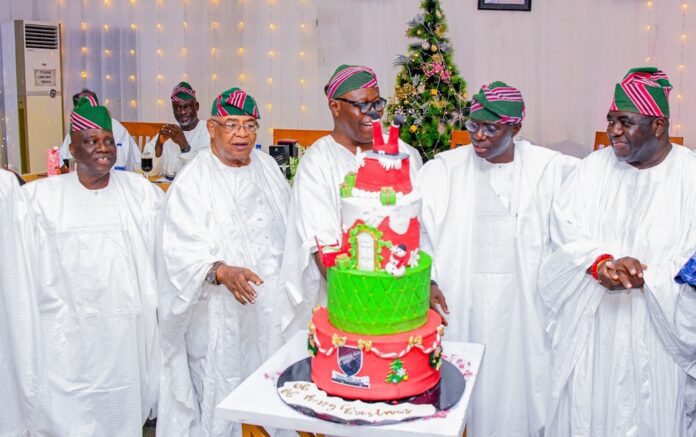 Lagos State Governor, Mr Babajide Sanwo-Olu (right), Chairman, Yoruba Tennis Club, Chief Babajide Damazio and his Vice, Bro Olakunle Agbebi during the Club’s Christmas Eve Dance at Lagos Island, on Saturday, 24 December 2022.L-R: Vice Chairman, Yoruba Tennis Club, Bro Olakunle Agbebi; the Club’s Chairman, Chief Babajide Damazio; Lagos State Governor, Mr Babajide Sanwo-Olu; Vice Patron and Trustee of the club; Dr Abayomi Finnih; Secretary of the Board of Trustees, Bro Bolaji Cole and Head of Service, Lagos State, Mr Hakeem Muri-Okunola during the Club’s Christmas Eve Dance at Lagos Island, on Saturday, 24 December 2022.L-R: Secretary, Board of Trustees, Yoruba Tennis Club, Bro Bolaji Cole; Vice Patron and Trustee of the club; Dr Abayomi Finnih; the Club’s Chairman, Chief Babajide Damazio; Lagos State Governor, Mr Babajide Sanwo-Olu and the Club’s Vice Chairman, Bro Olakunle Agbebi during the Club’s Christmas Eve Dance at Lagos Island, on Saturday, 24 December 2022.
