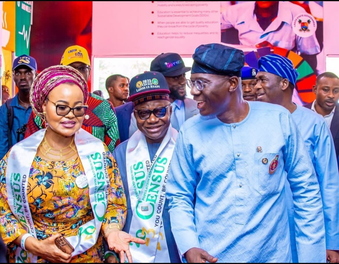 L-R: Federal Commissioner, Lagos State, National Population Commission (NPC), Bar Bimbola Salu-Hundeyin; National Chairman of NPC, Alhaji Nasir Isa Kwarra; Lagos State Governor Babajide Sanwo-Olu, his Deputy, Dr Obatemi Hamzat and others during the Census Summit in Lagos … on Tuesday