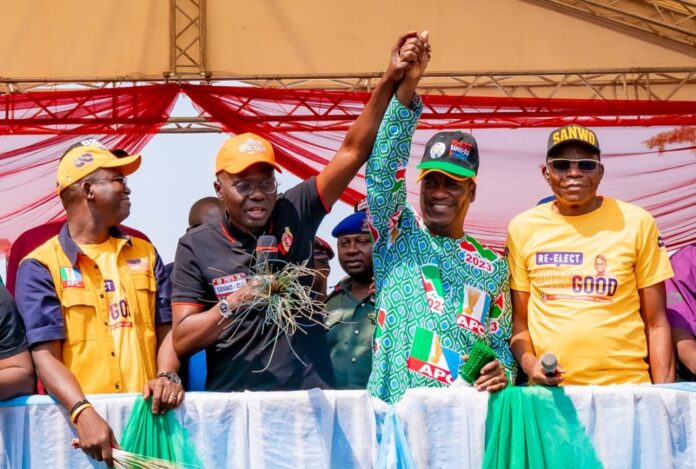 Lagos State Governor, Mr. Babajide Sanwo-Olu (left) acknowledging cheers from party faithful during the APC Gubernatorial Campaign– Lagos East Senatorial District Mega Rally at Ikorodu Town Hall, on Tuesday, December 20, 2022.L-R: Senator Tokunbo Abiru; Lagos State Governor, Mr. Babajide Sanwo-Olu; his deputy, Dr. Obafemi Hamzat and Chairman, All Progressives Congress (APC) Lagos State Chapter, Hon. Cornelius Ojelabi, during the APC Gubernatorial Campaign– Lagos East Senatorial District Mega Rally at Ikorodu Town Hall, on Tuesday, December 20, 2022.Lagos State Governor, Mr. Babajide Sanwo-Olu (middle) acknowledging cheers from Ikorodu residents during the APC Gubernatorial Campaign– Lagos East Senatorial District Mega Rally at Ikorodu Town Hall, on Tuesday, December 20, 2022.Lagos State Governor, Mr. Babajide Sanwo-Olu (middle) acknowledging cheers from Ikorodu residents during the APC Gubernatorial Campaign– Lagos East Senatorial District Mega Rally at Ikorodu Town Hall, on Tuesday, December 20, 2022.Member of the House of Representatives, Ikorodu Federal Constituency, Hon Jimi Benson; Senator Tokunbo Abiru; Lagos State Governor, Mr. Babajide Sanwo-Olu; his deputy, Dr. Obafemi Hamzat; Chairman, All Progressives Congress (APC) Lagos State Chapter, Hon. Cornelius Ojelabi and Director-General of the All Progressives Congress (APC) Campaign Committee in Lagos, Senator Ganiyu Solomon, during the APC Gubernatorial Campaign– Lagos East Senatorial District Mega Rally at Ikorodu Town Hall, on Tuesday, December 20, 2022.Member of the House of Representatives, Ikorodu Federal Constituency, Hon Jimi Benson; Senator Tokunbo Abiru; Lagos State Governor, Mr. Babajide Sanwo-Olu; his deputy, Dr. Obafemi Hamzat; Member of the House Of Representatives, Epe Federal Constituency, Hon. Wale Raji and Chairman, All Progressives Congress (APC) Lagos State Chapter, Hon. Cornelius Ojelabi, during the APC Gubernatorial Campaign– Lagos East Senatorial District Mega Rally at Ikorodu Town Hall, on Tuesday, December 20, 2022.Member of the House of Representatives, Ikorodu Federal Constituency, Hon Jimi Benson; Senator Tokunbo Abiru; Lagos State Governor, Mr. Babajide Sanwo-Olu; his deputy, Dr. Obafemi Hamzat and Chairman, All Progressives Congress (APC) Lagos State Chapter, Hon. Cornelius Ojelabi, during the APC Gubernatorial Campaign– Lagos East Senatorial District Mega Rally at Ikorodu Town Hall, on Tuesday, December 20, 2022.