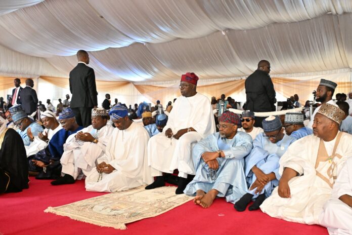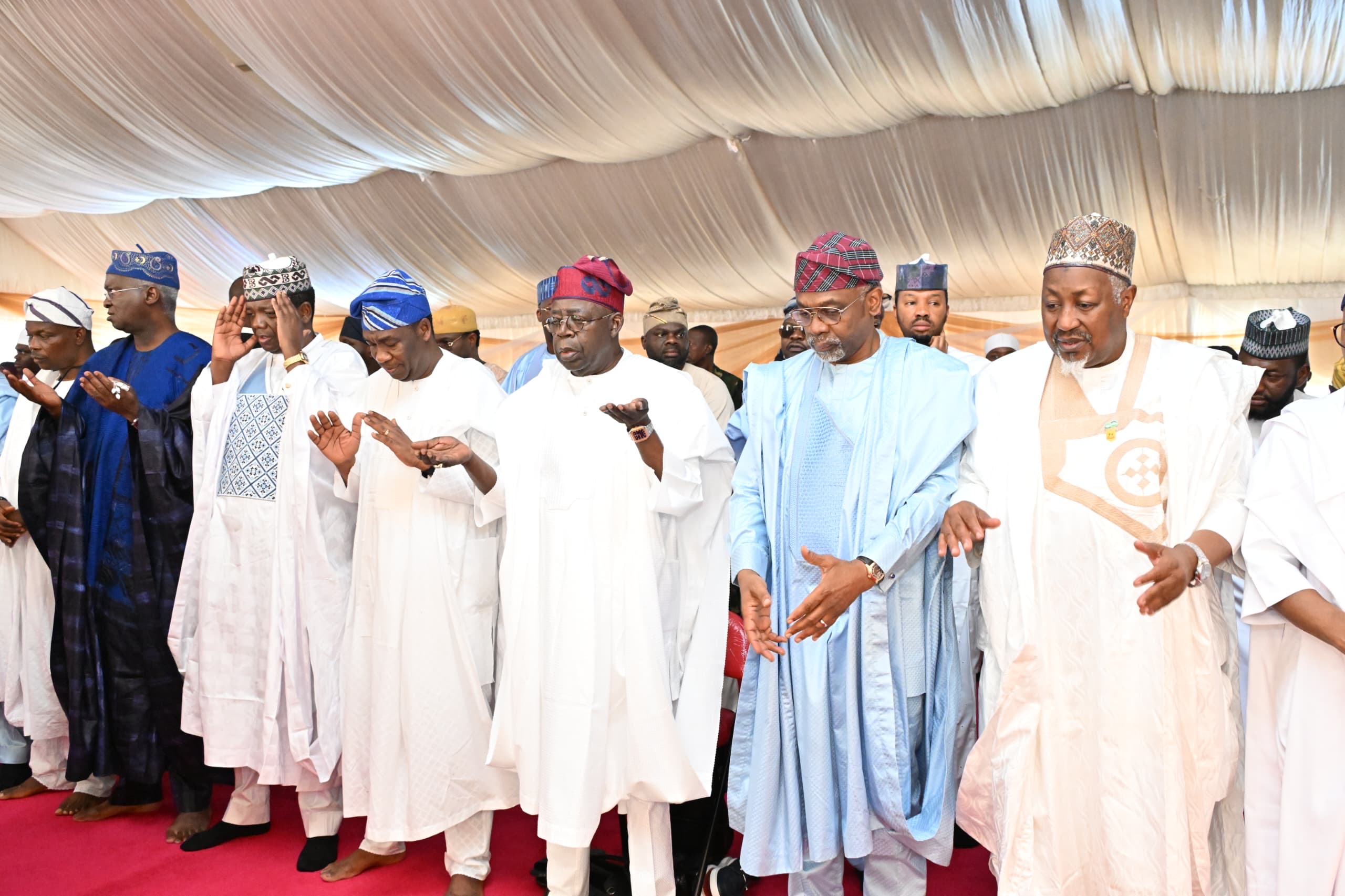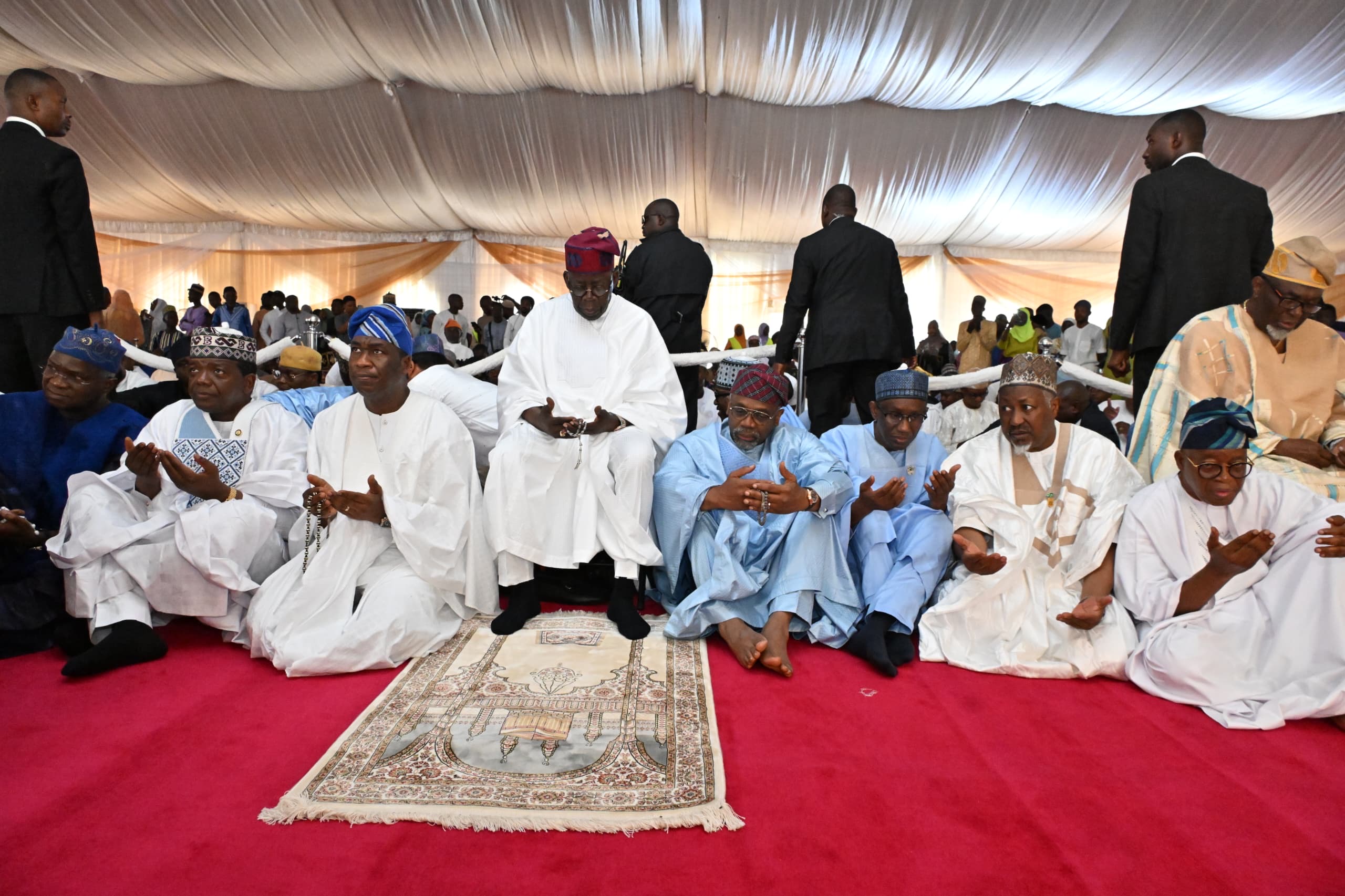Top government officials join Tinubu for Eid-el-Kabir prayers in Lagos. Credit: X| DOlusegun