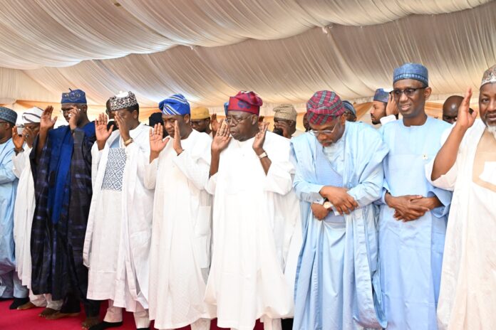 President Bola Tinubu on Friday joined other Muslims across the country to observe the Eid-el-Kabir prayer.